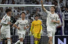 凌晨的伯纳乌,一道跨越半场的彩虹划破夜空...